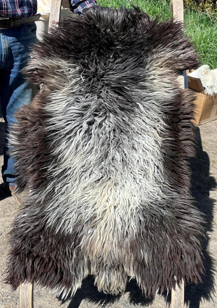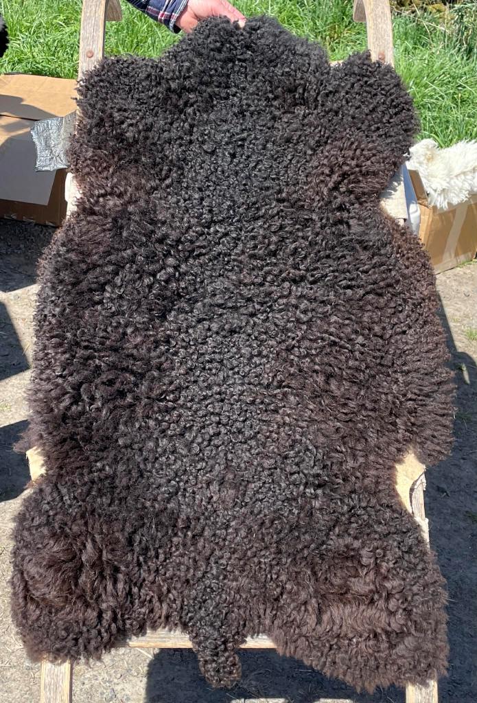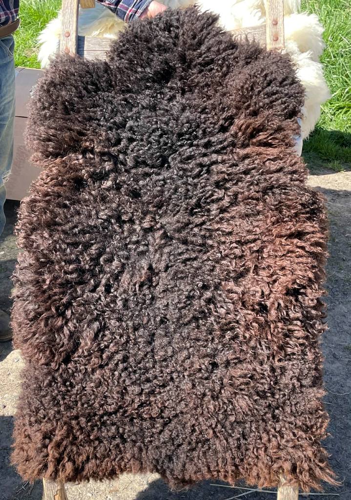 Pelt #BLX 17 Border Leicester x Gotland x Jacob $375* Color: Brownish Black Dimensions: 45"L x 29"W Lock Length: 4" Weight: 2 lbs 15 oz |