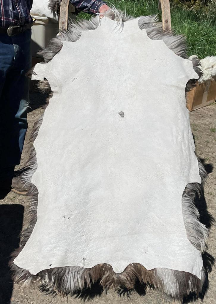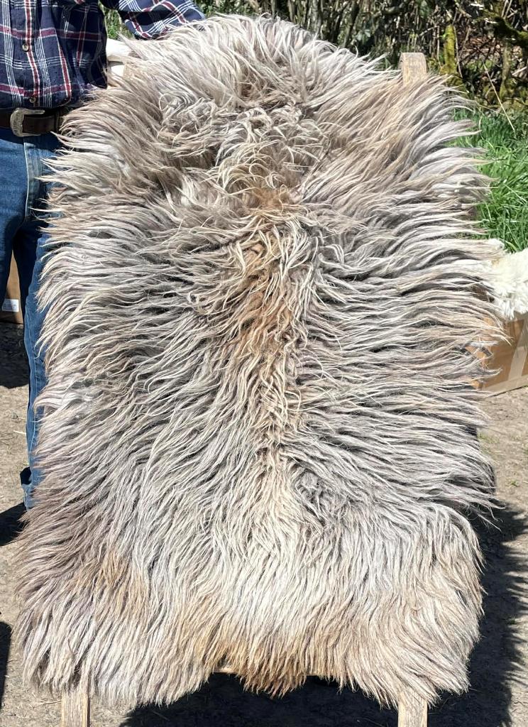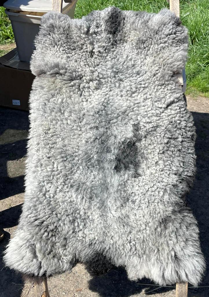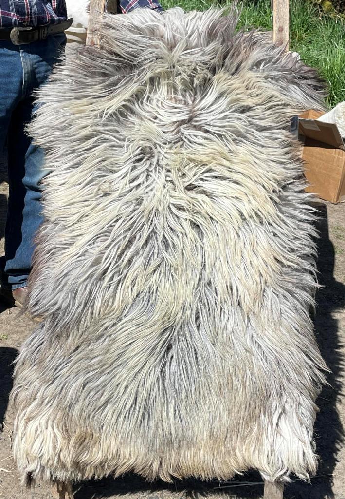 Pelt #BLX 13 Border Leicester x Gotland x Jacob $300* Color: Gray Dimensions: 43"L x 28"W Lock Length: 2" Weight: 2 lbs 10 oz |
