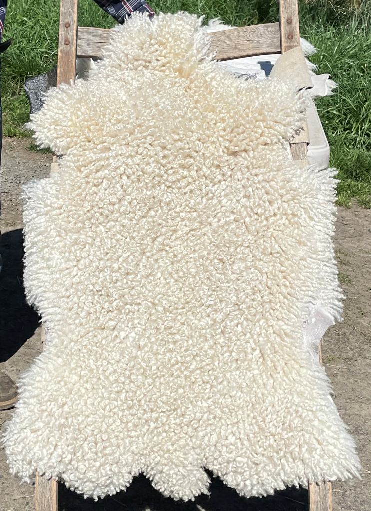 Pelt #BLX 20 Border Leicester x Gotland x Navajo-Churro $300* Color: White Dimensions: 43"L x 29"W Lock Length: 4" Weight: 3 lbs |