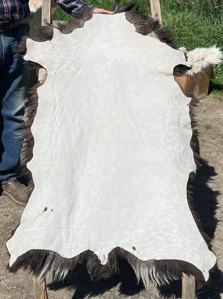 Pelt #S-BLX 9 Border Leicester x Gotland x Navajo-Churro $300* Color: White Dimensions: 43"L x 26" Lock Length: 4" Weight: 3 lbs 14 oz |